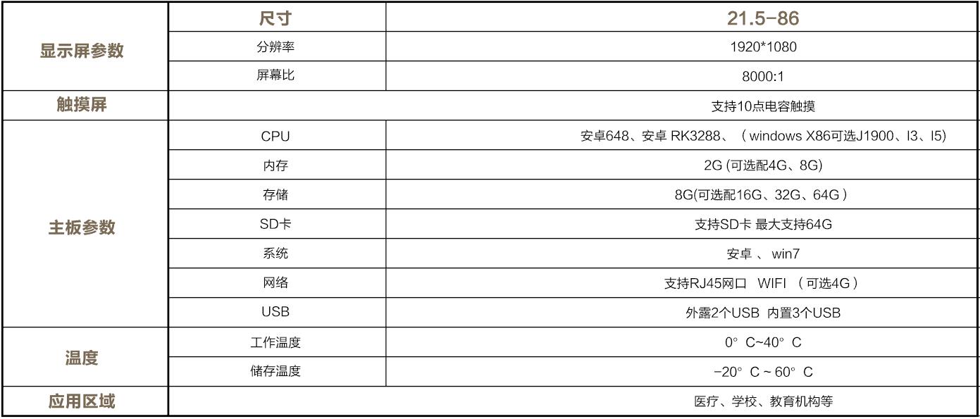 質感拉絲金屬;高清畫質;采用紅外觸摸技術,觸摸極速反應;內置WIFI;支持U盤導入內容。